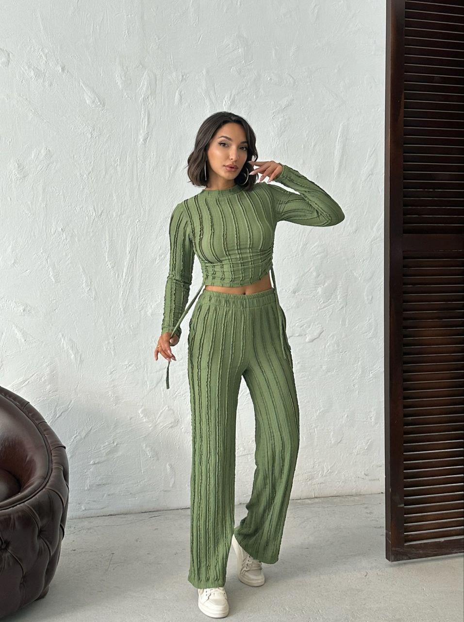 Rahatlığın ve şıklığın bir arada olduğu dikiş detaylı fitilli kumaş ikili takım, modern tasarımıyla günlük stilin vazgeçilmezi olacak.