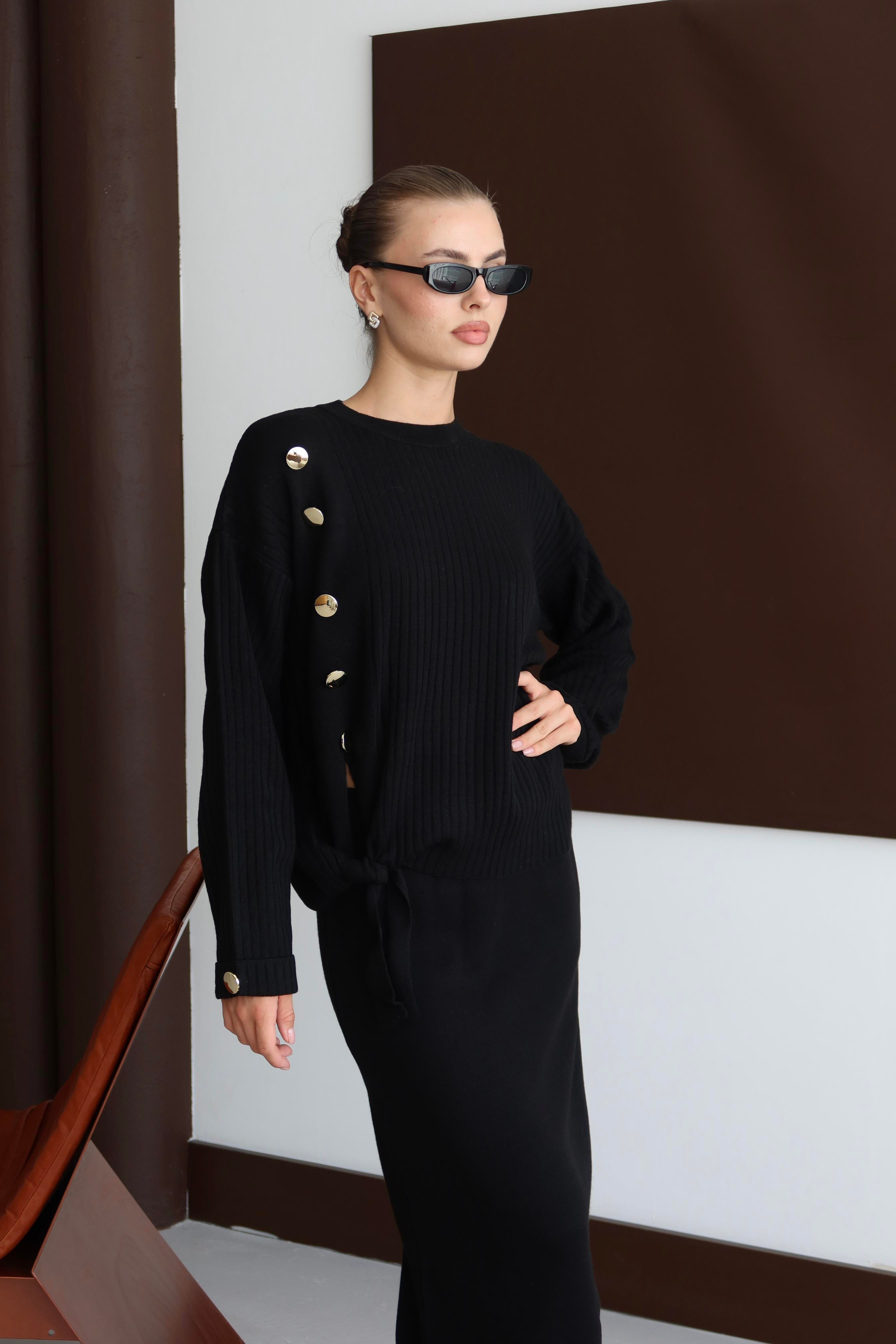 Düğme Detaylı Triko Etek TakımAlt - Üst TakımJeevee