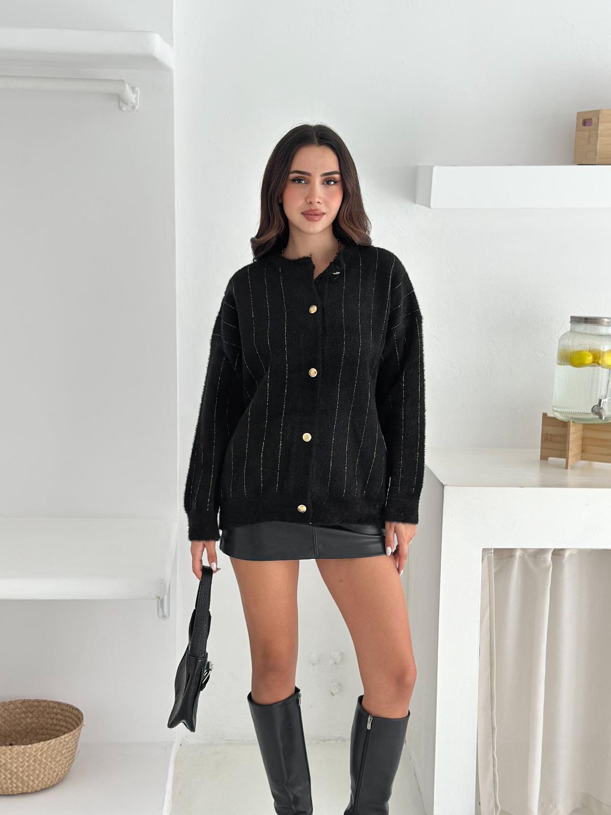 Yumuşacık dokusu ve zarif çizgili deseniyle öne çıkan bu düğmeli triko hırka, konforlu ve şık bir görünüm sunar.