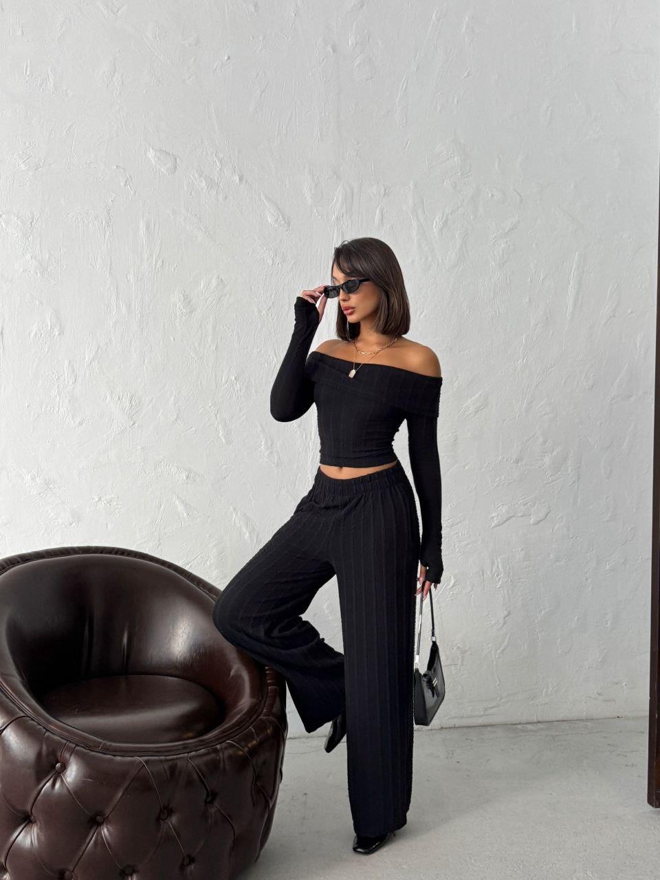 Şıklığı ve rahatlığı bir araya getiren fitilli madonna yaka parmak geçmeli ikili takım, sezonun trend parçalarından. Omuz açık madonna yaka crop üst, uzun kollu ve parmak geçme detayı ile öne çıkıyor. Yüksek bel, rahat kalıplı pantolonu ile hem günlük hem de spor-şık kombinler için ideal.