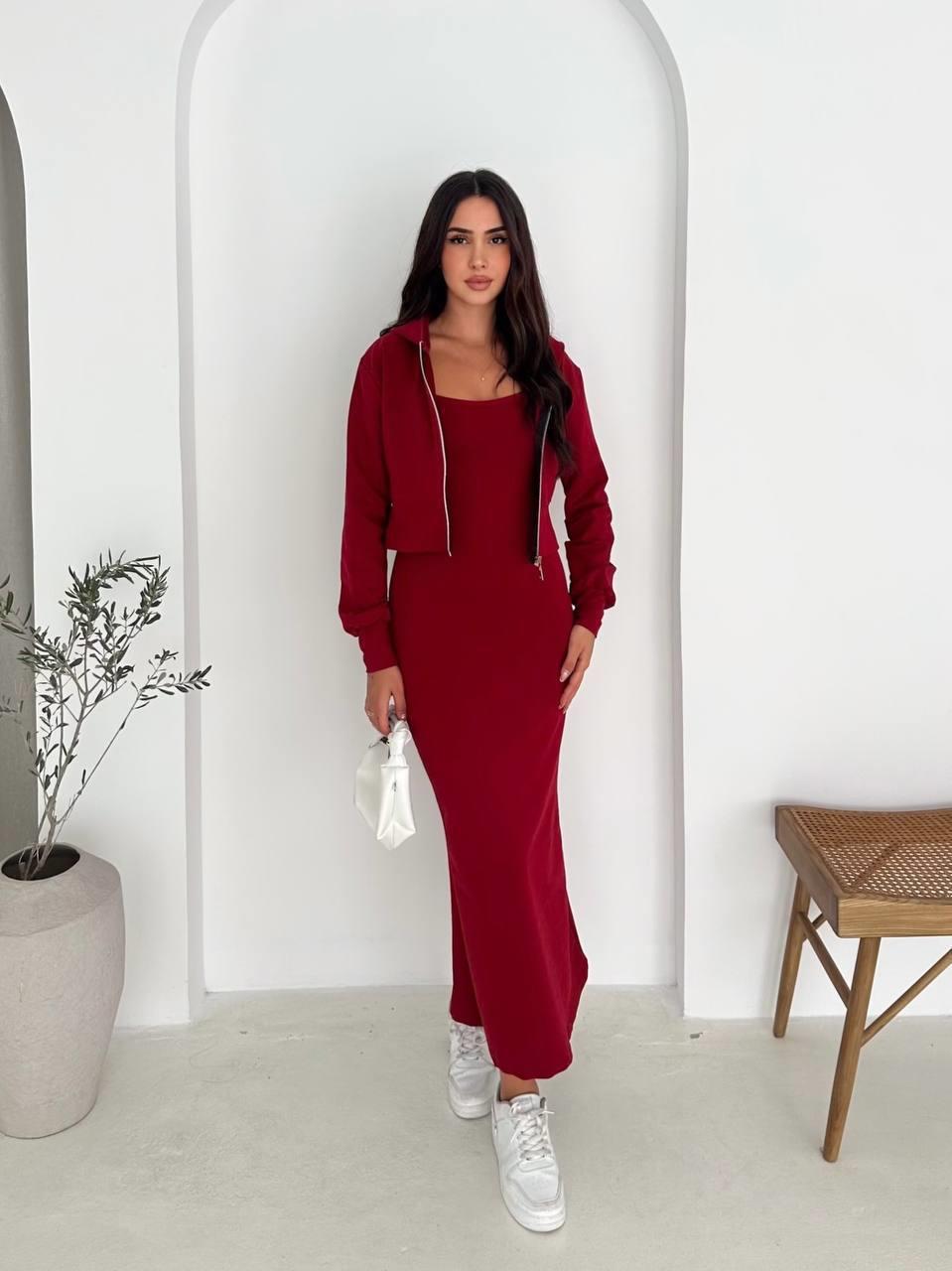 İki İplik Crop Sweat ve Uzun Elbise Takım (2530)