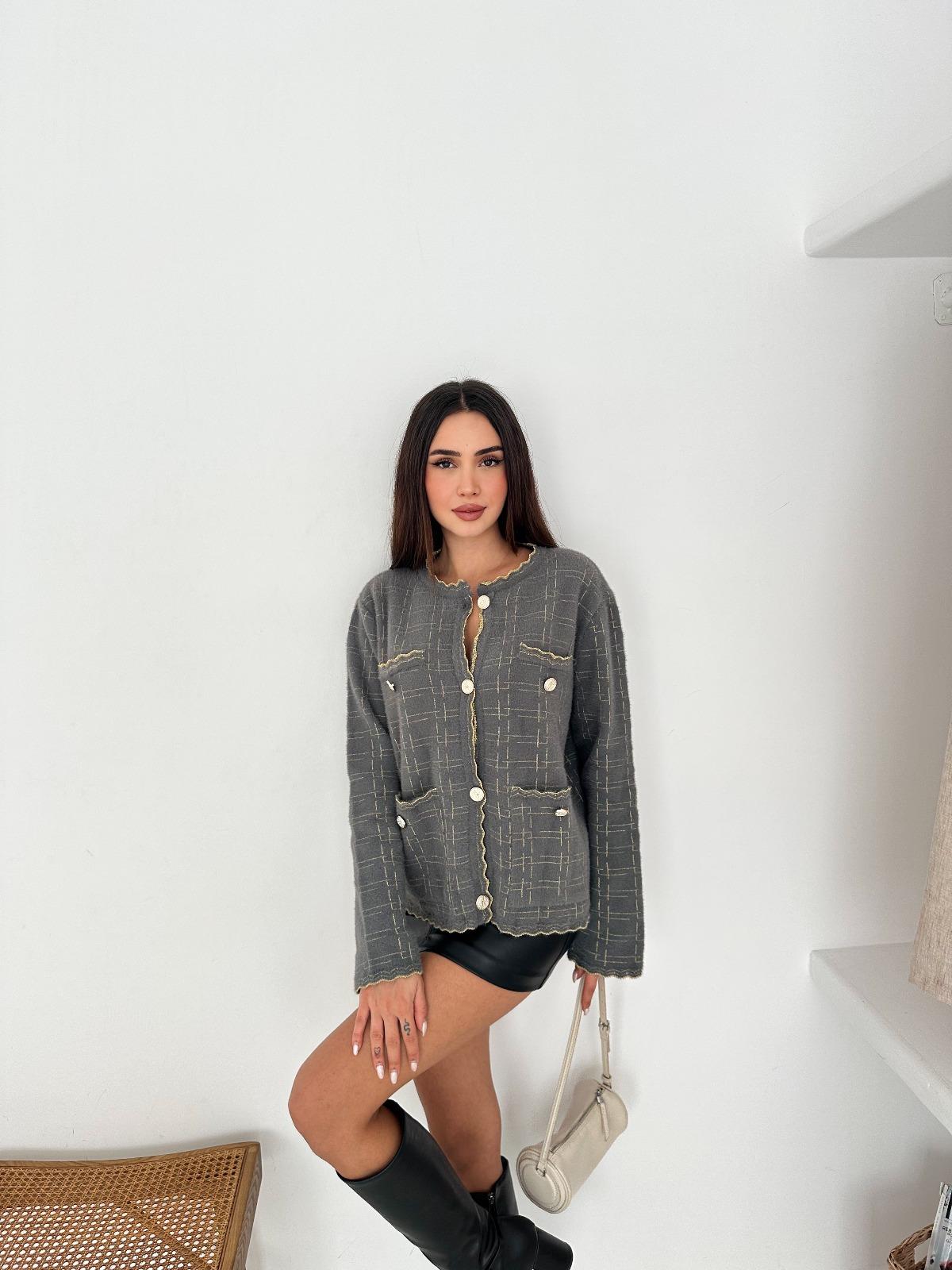 Kontrast Dikişli Tweed Dokulu Düğmeli Triko Hırka Kontrast Dikişli Tweed Dokulu Düğmeli Triko Hırka Kontrast Dikişli Tweed Dokulu Düğmeli Triko Hırka