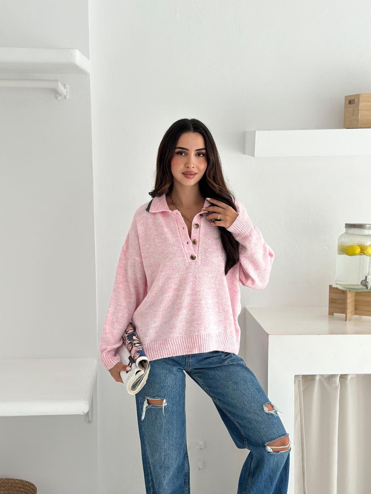 Polo Yaka Düğmeli Yumuşak Dokulu Triko Kazak (2533)