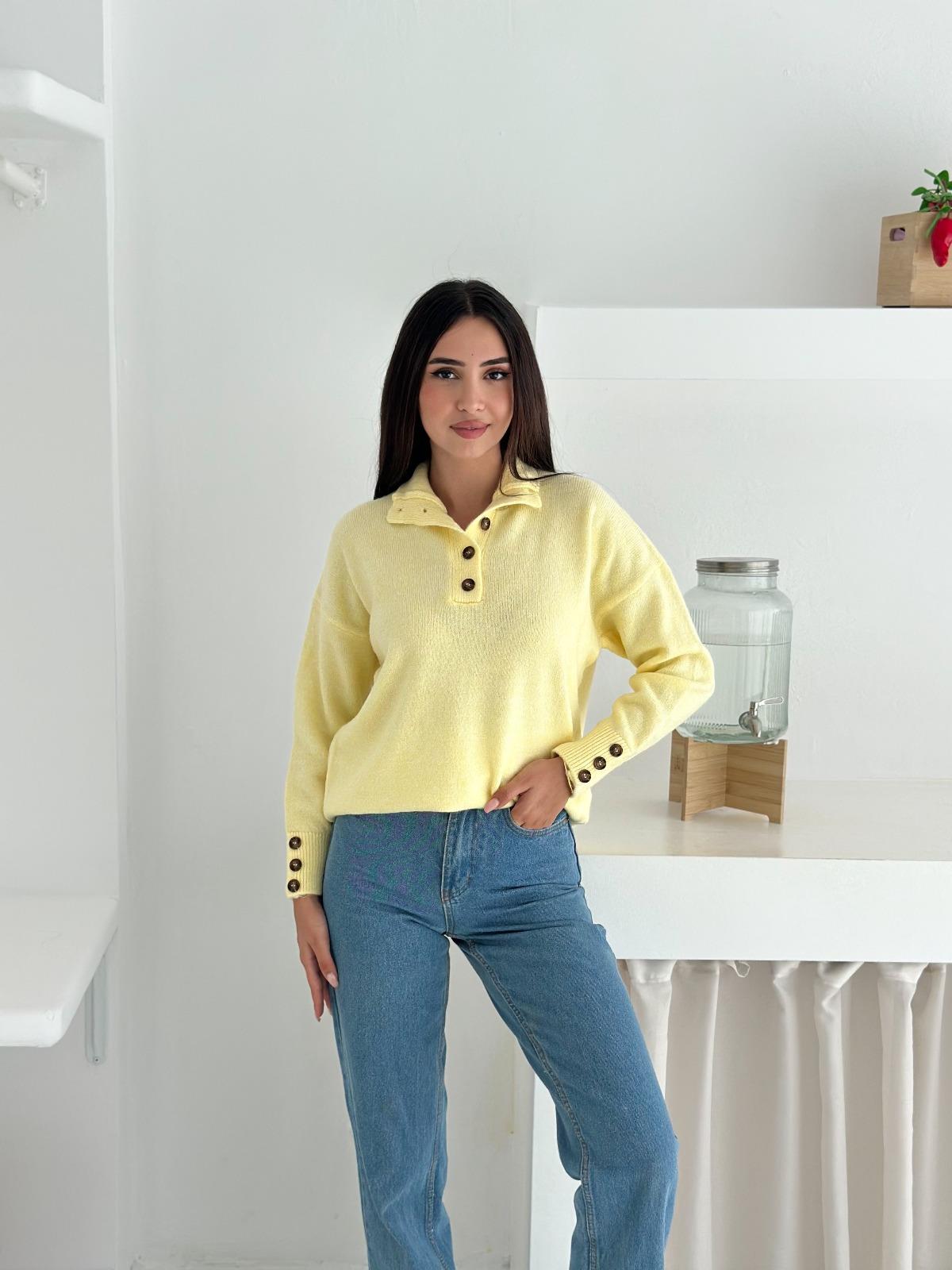 Şıklığı ve konforu bir arada sunan polo yaka yarım pat kol düğme detay triko kazak, günlük kombinlerde modern bir duruş yaratır.