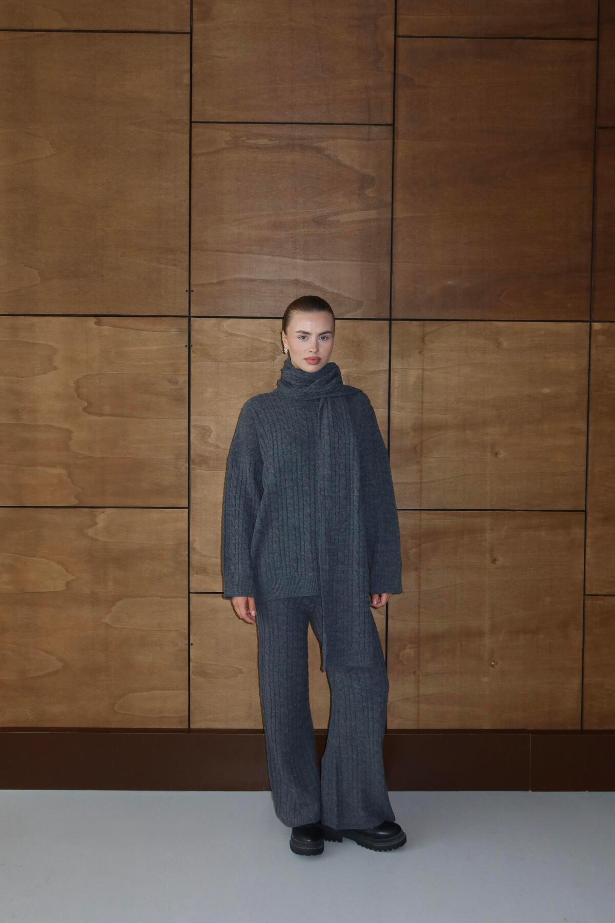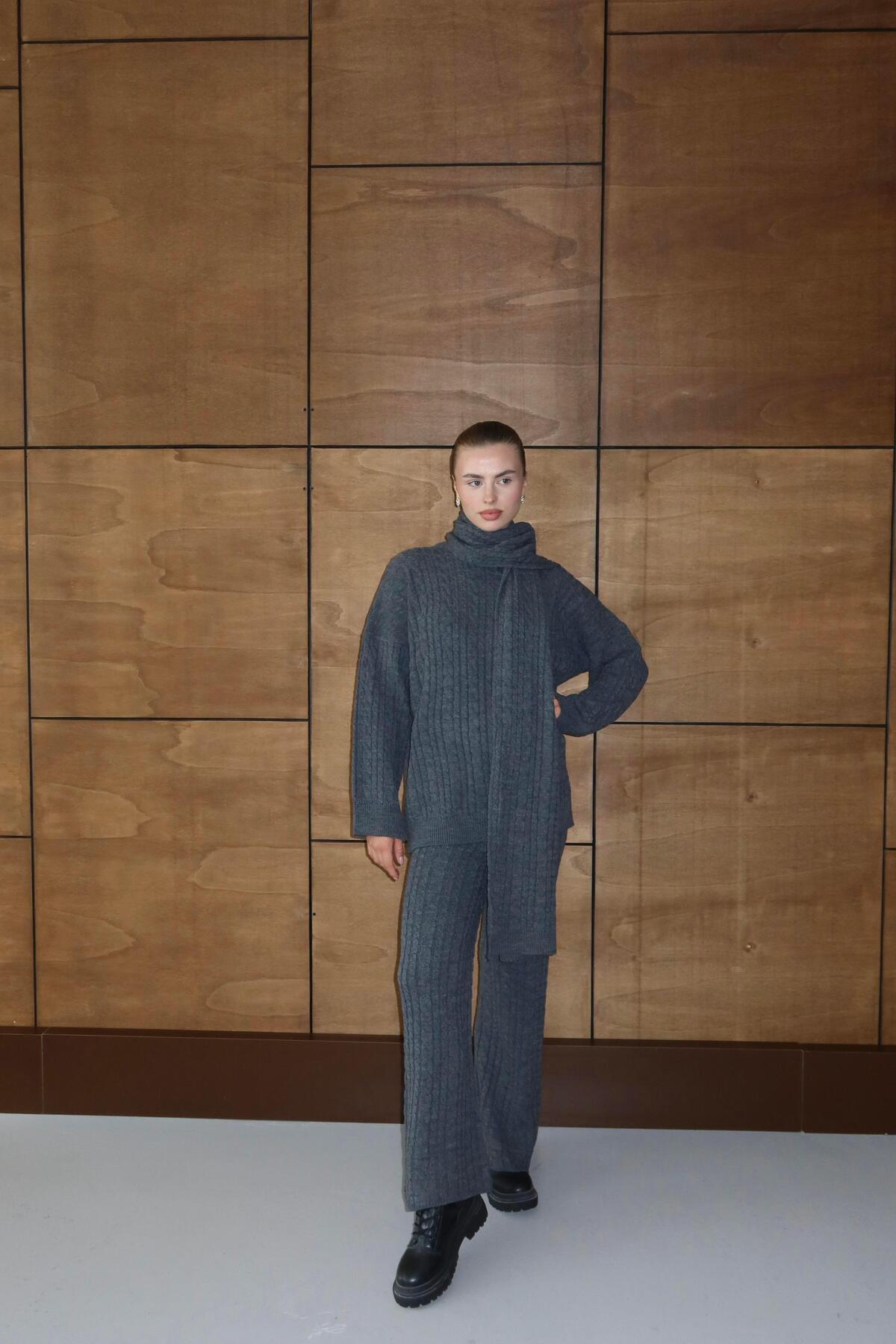 Atkılı kablo desenli oversize triko takım, soğuk günlerde hem sıcak tutan hem de rahat bir görünüm sunar. Yumuşak ve esnek dokusu sayesinde gün boyu konforludur.