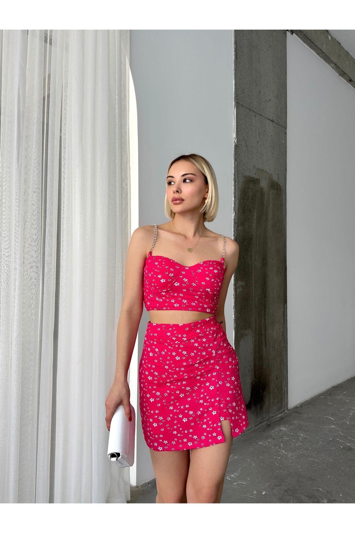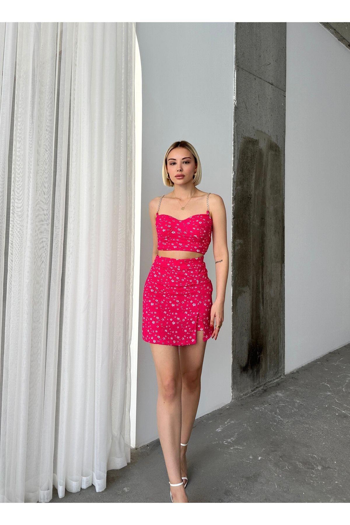 Çiçek Desenli Crop-etek Takım Şort Etek