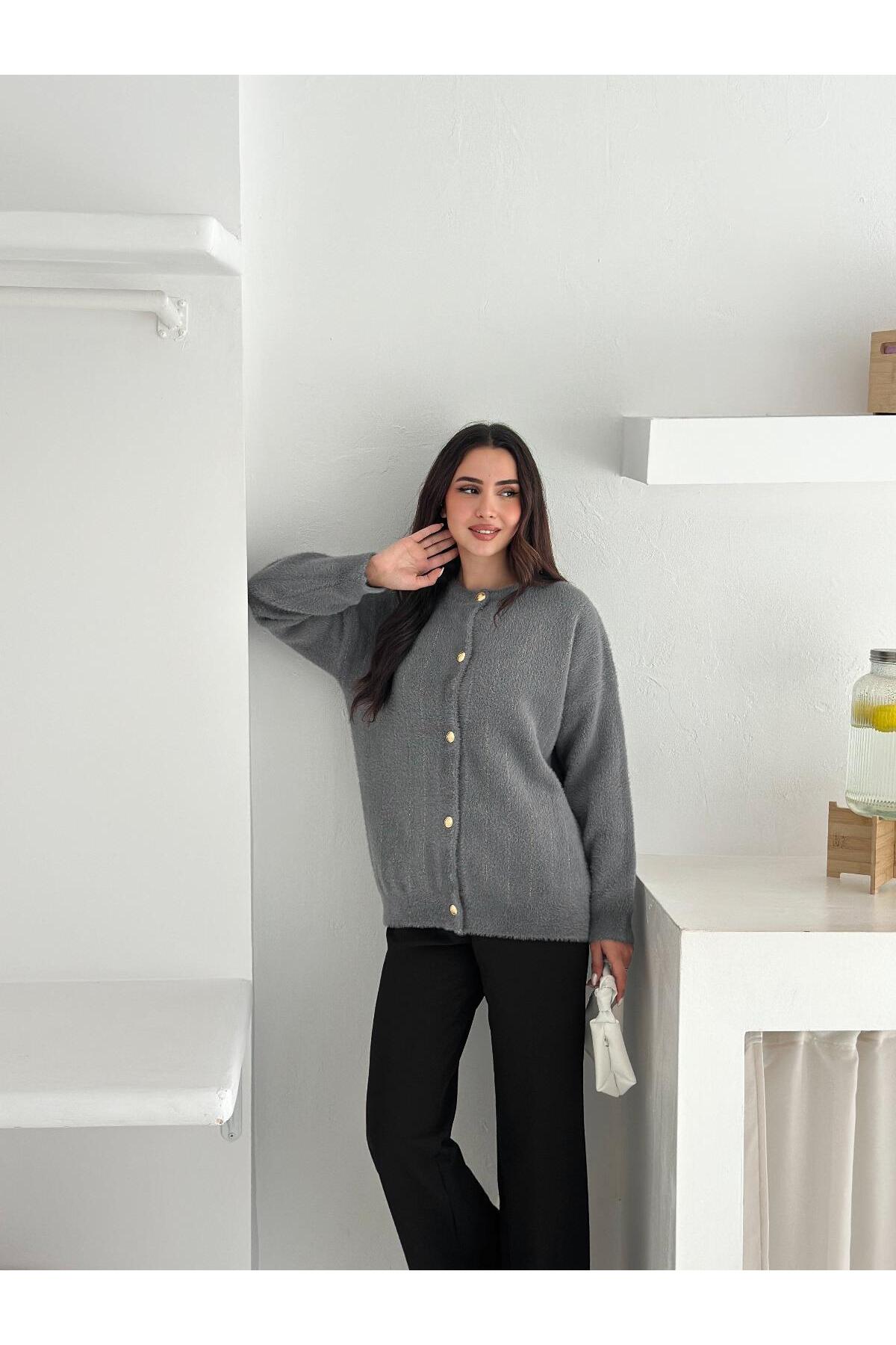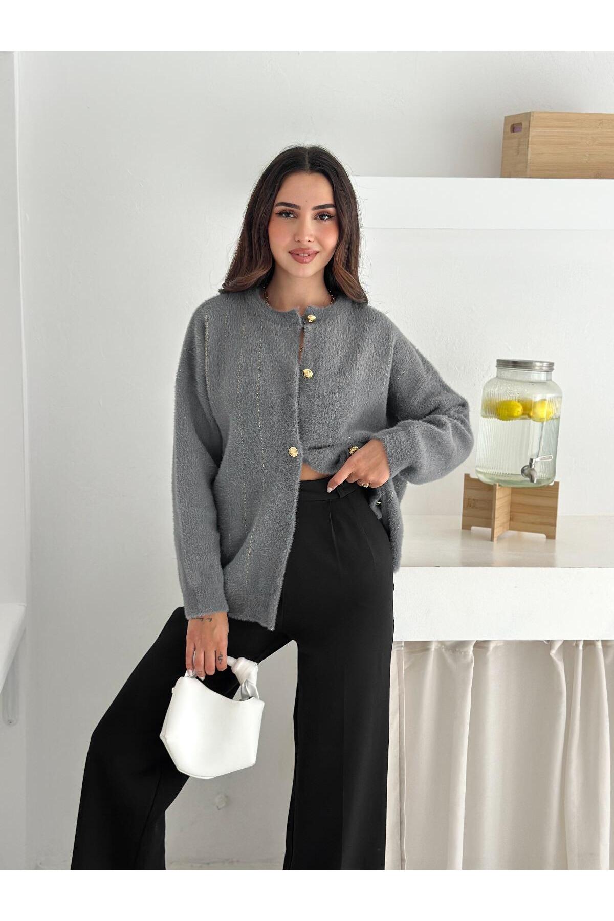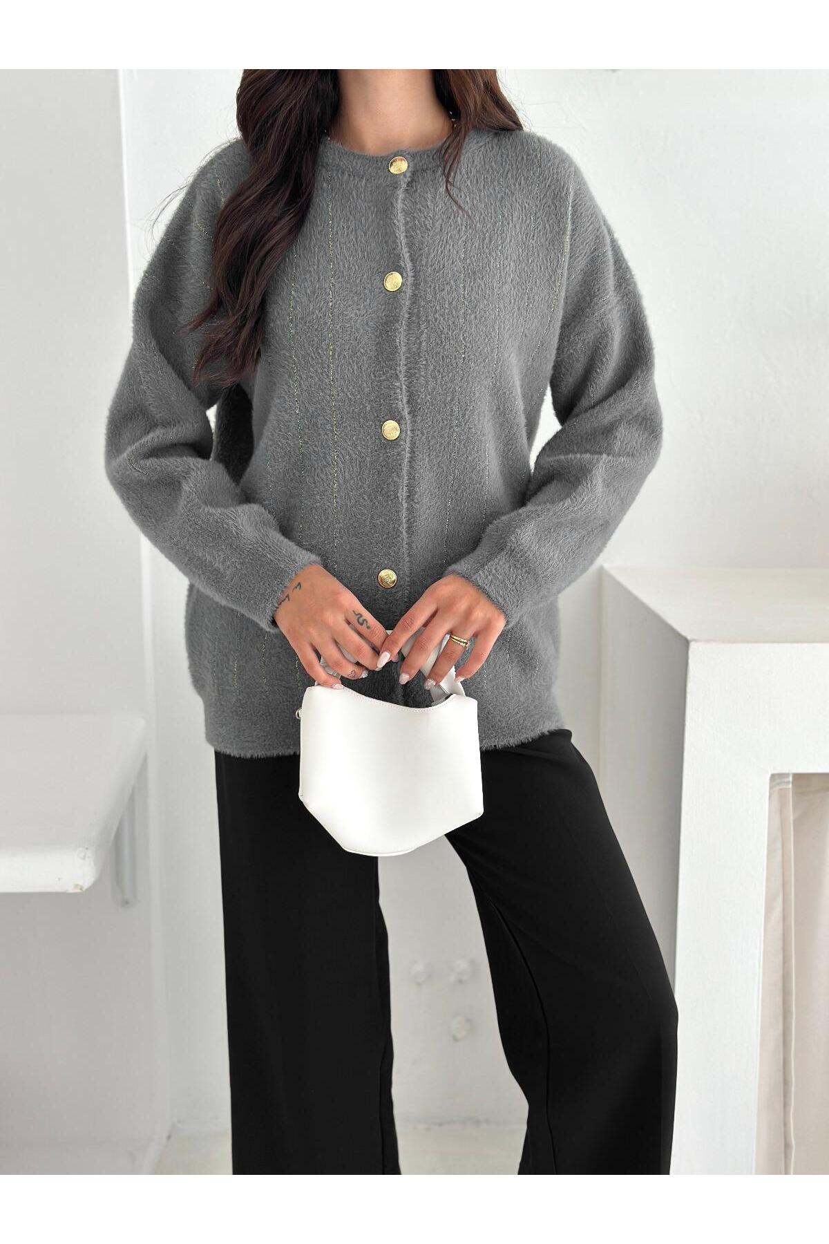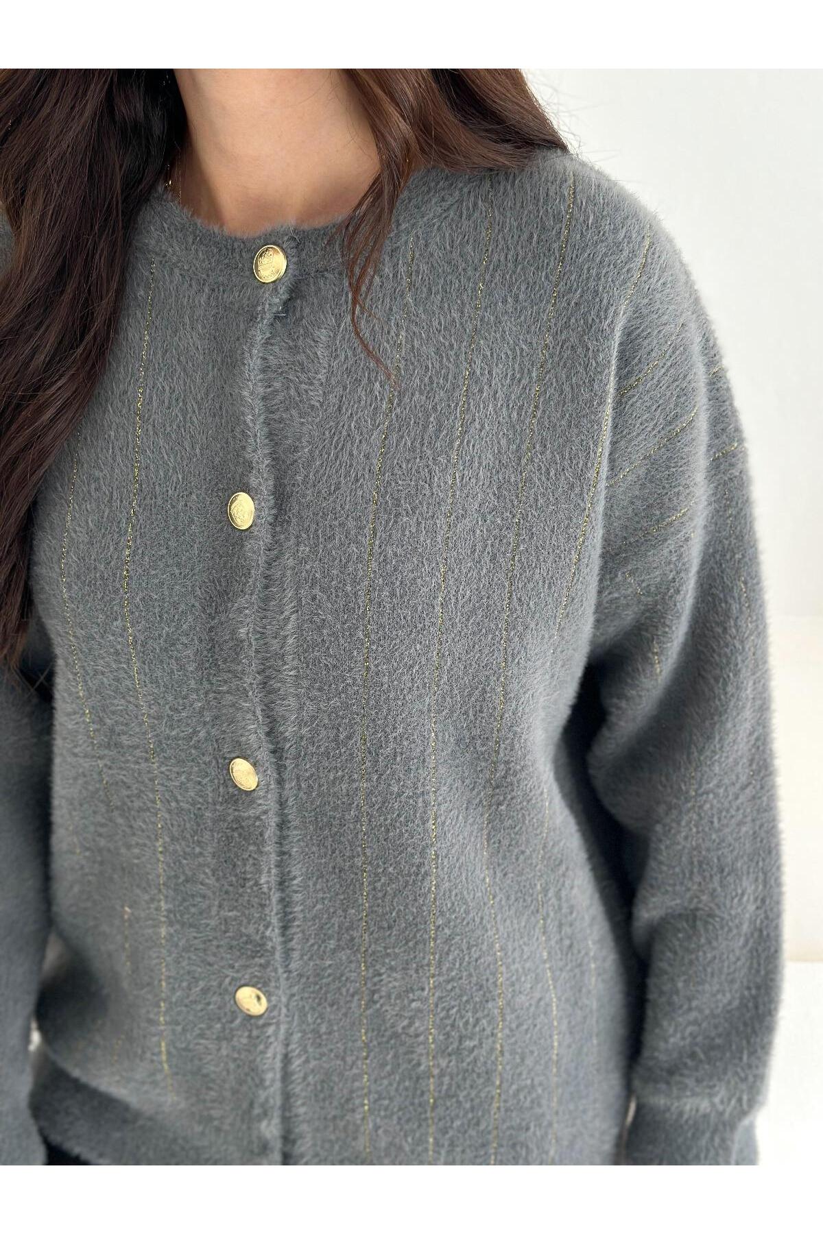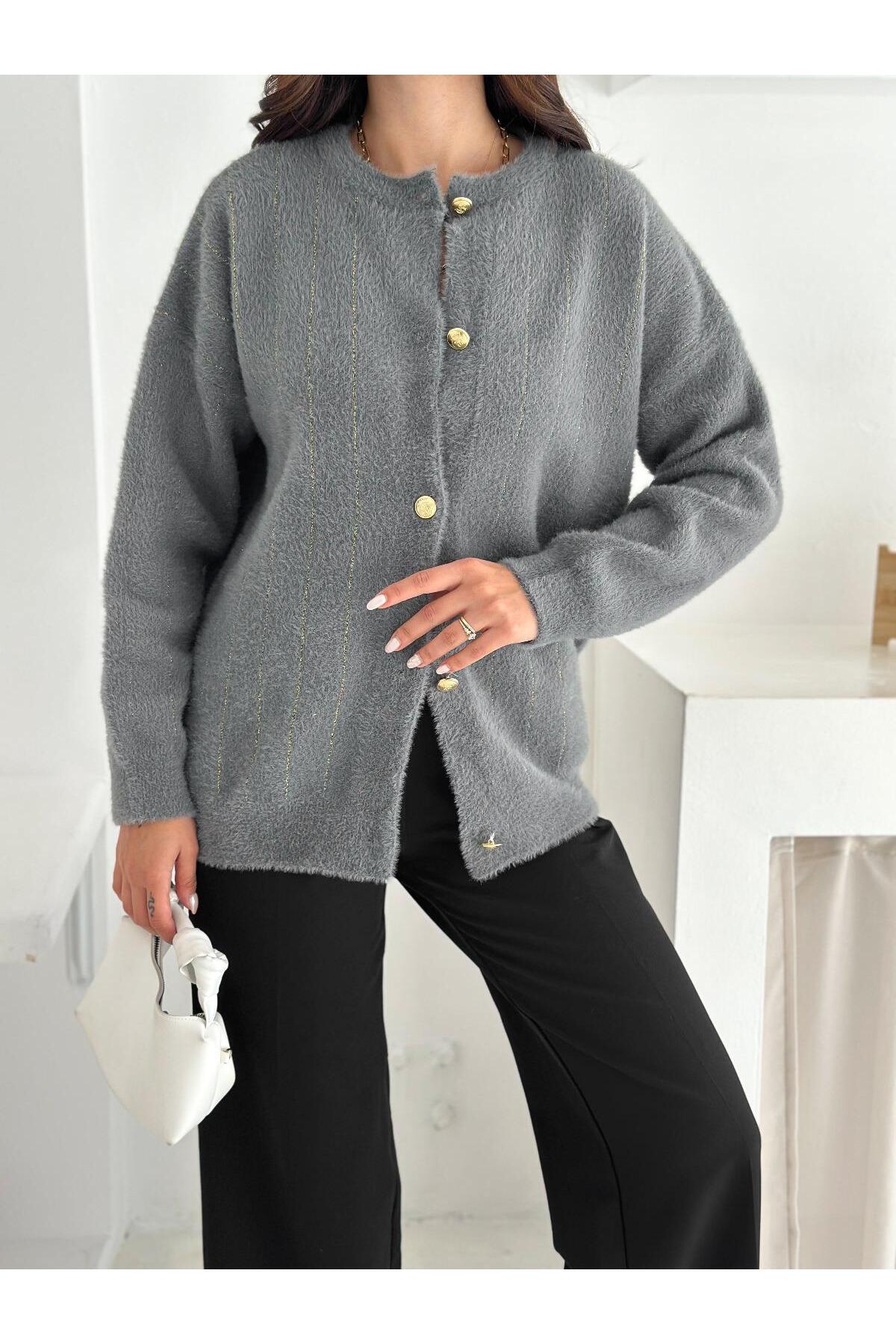 Yumuşacık dokusu ve zarif çizgili deseniyle öne çıkan bu düğmeli triko hırka, konforlu ve şık bir görünüm sunar.; Altın düğme detaylarıyla modern bir dokunuş kazanan model, hem günlük hem ofis kombinlerinde rahatlıkla kullanılabilir.; Jean, kumaş pantolon veya eteklerle kombinleyerek farklı tarzlar oluşturabilirsiniz