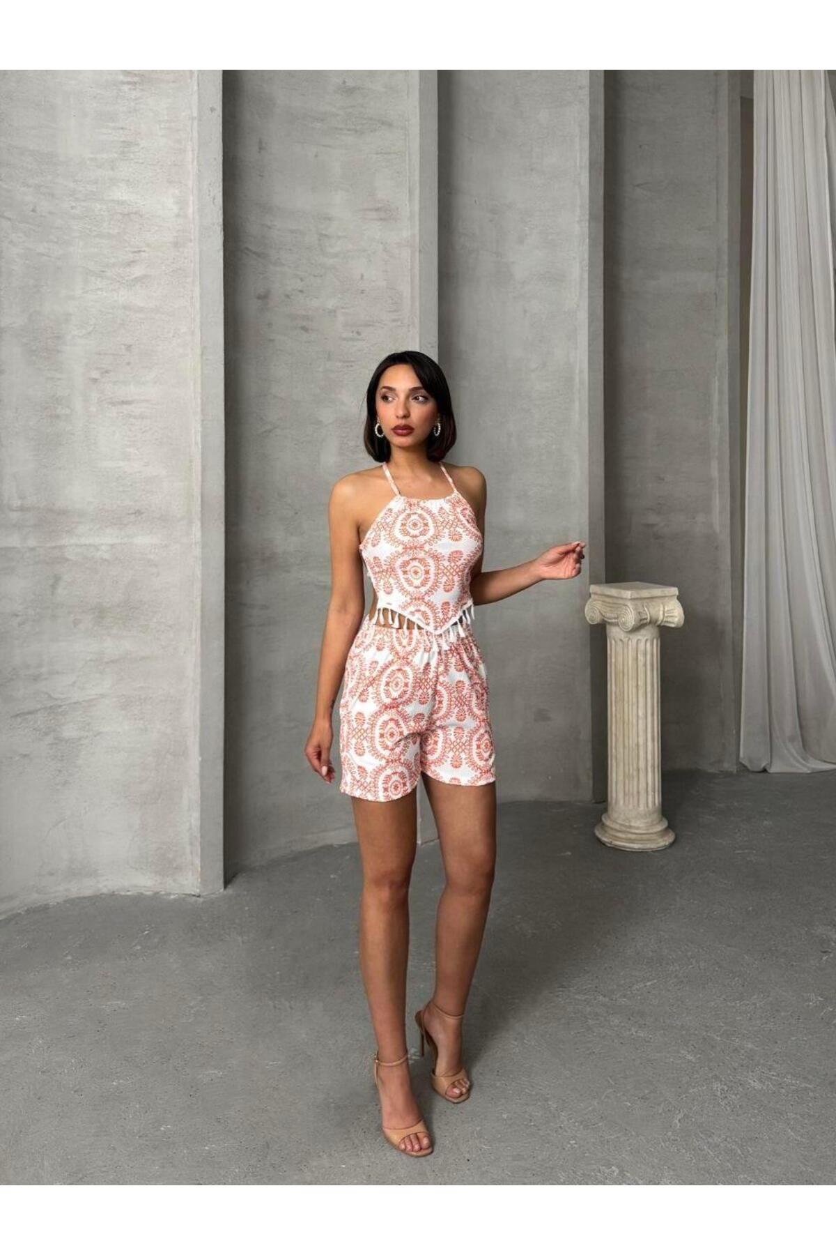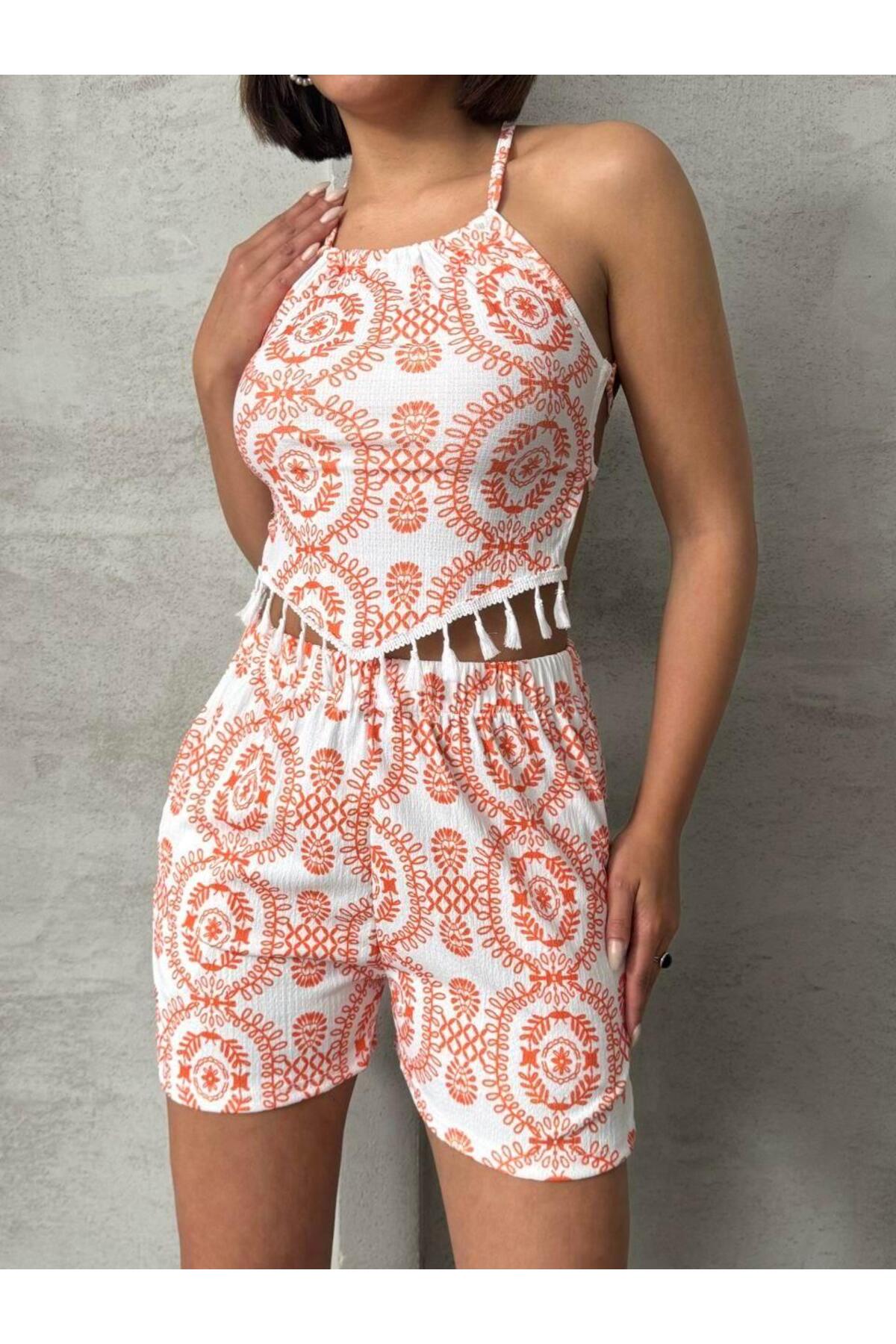 Etnik Desenli Püsküllü Yazlık Şort Takım