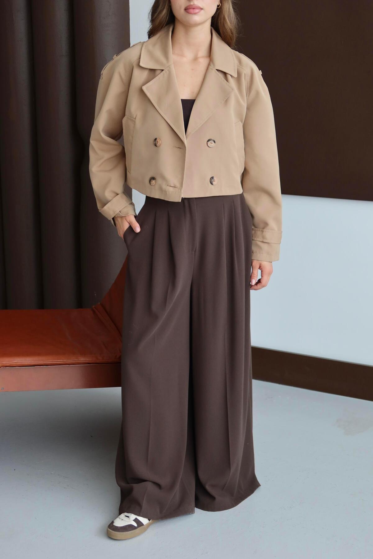 Kısa Kruvaze Crop Trençkot