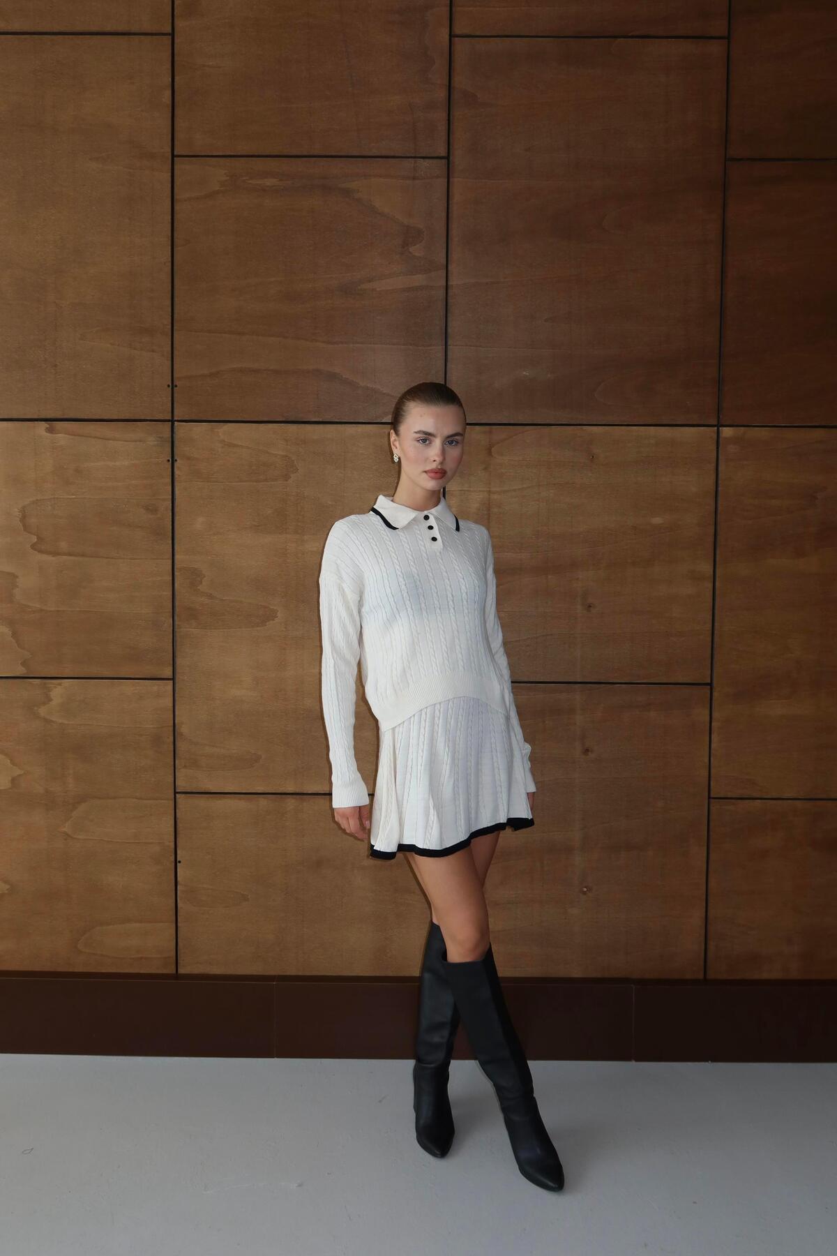 Polo Yaka Triko Elbise Takım